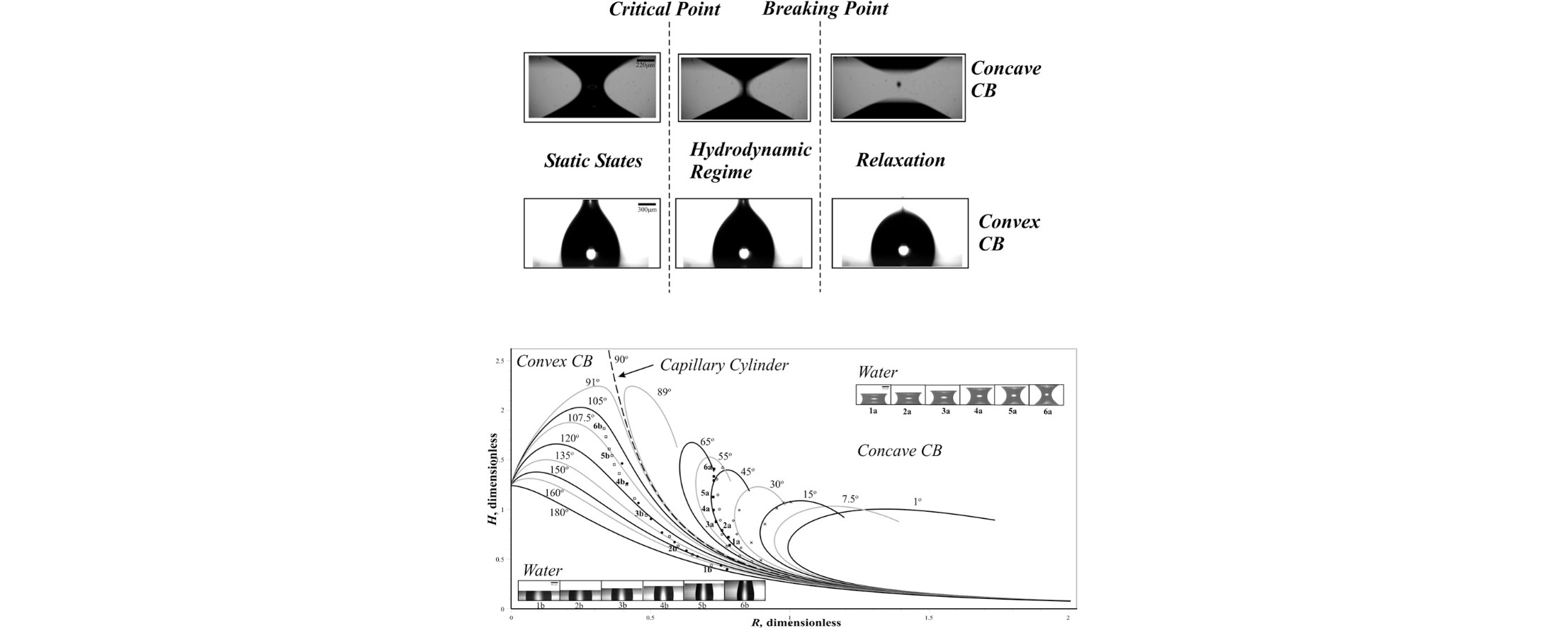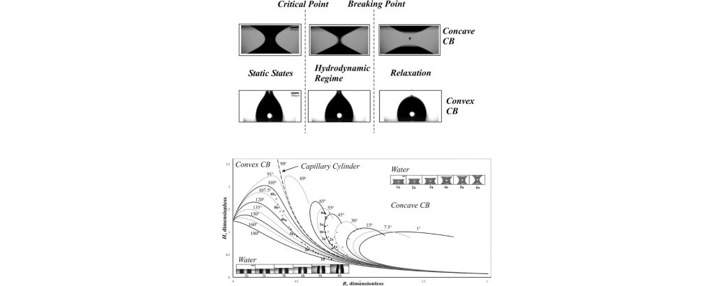 The present study is focused on the capillary bridge (CB) behaviour in the vicinity of its critical state. As known, a critical state is an extreme, unstable point, by crossing which a given system passes from one state to another. In our case, this passage is from equilibrium (static) to a hydrodynamic state. The hydrodynamic process, called here hydrodynamic regime occurring in concave CB is characterized by local deformations in the region of its neck, registered via a high speed camera (∼1000 fps). The information obtained from the experiment is interpreted on the basis of a lubrication model. The theoretical evaluations correlate satisfactorily with the experimental data.